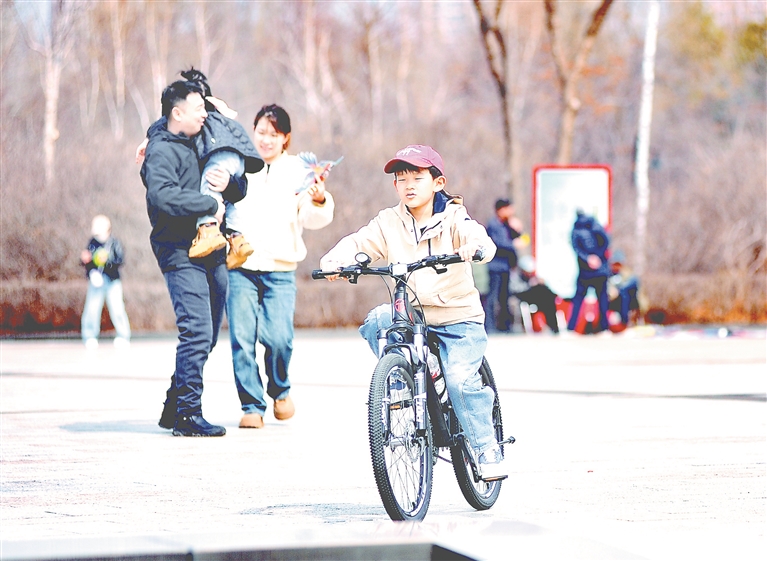 隨著氣溫回升,哈爾濱市民紛紛來到戶外,享受春日美景,金河公園、丁香公園各大公園內(nèi)洋溢著歡聲笑語。人工湖內(nèi)的冰還沒有完全融化,綠地的小草剛剛“冒頭兒”。孩子們在這生機(jī)勃勃的景象中盡情嬉戲,有的騎著自行車在小徑上穿梭,有的手握五彩斑斕的風(fēng)箏奔跑,還有的則在綠茵場上來一場酣暢淋漓的足球賽。