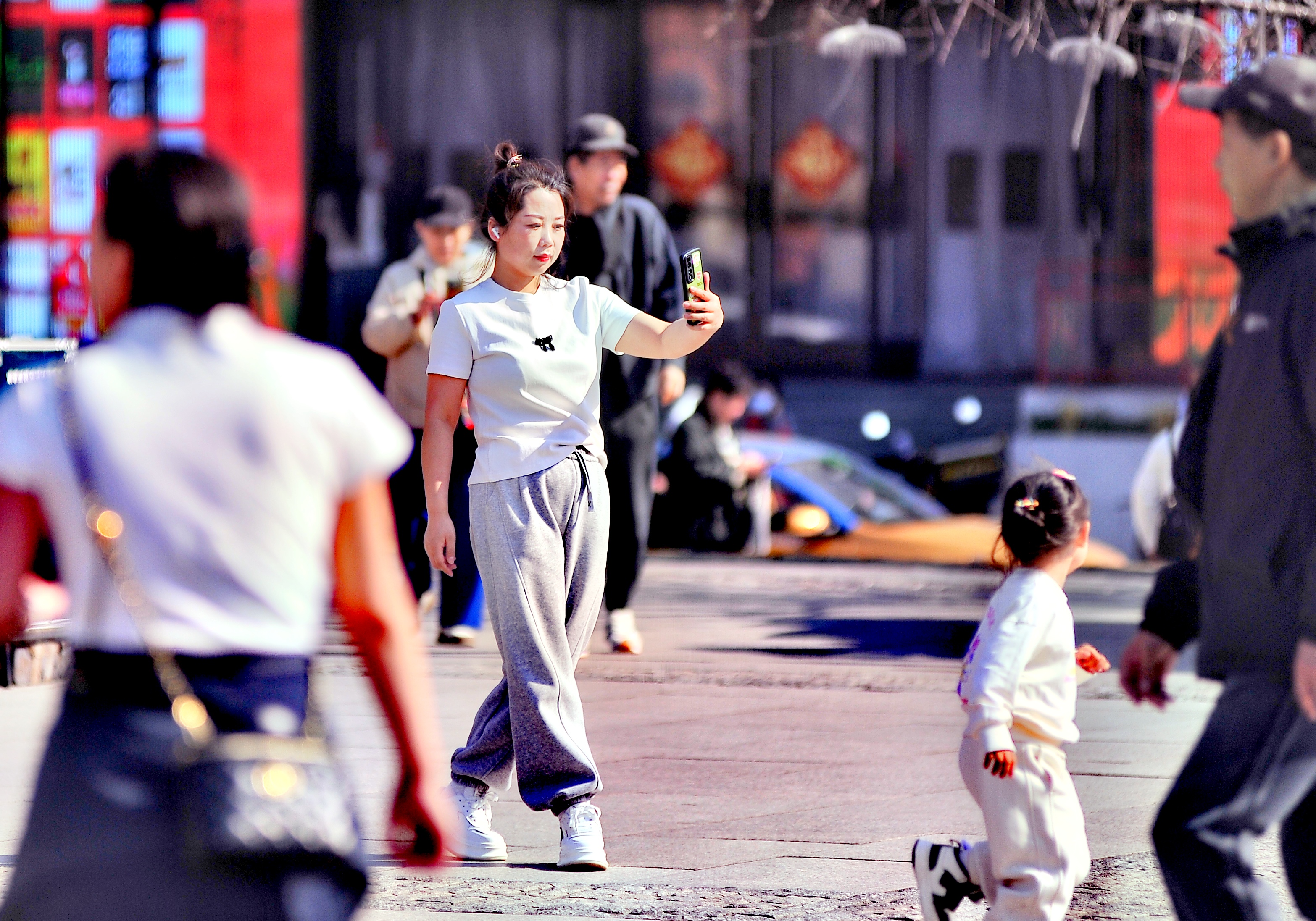 市民穿短袖T恤逛街