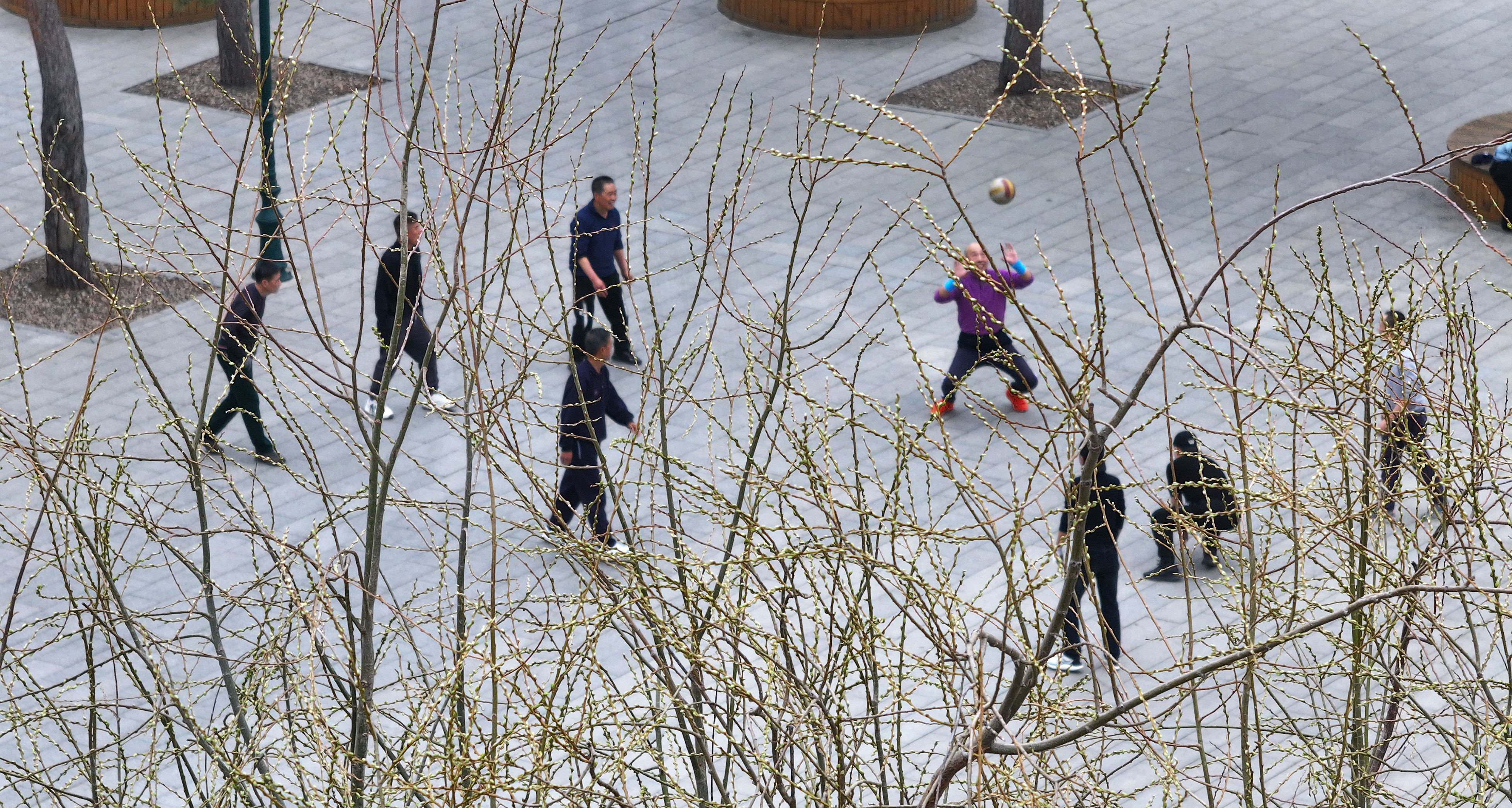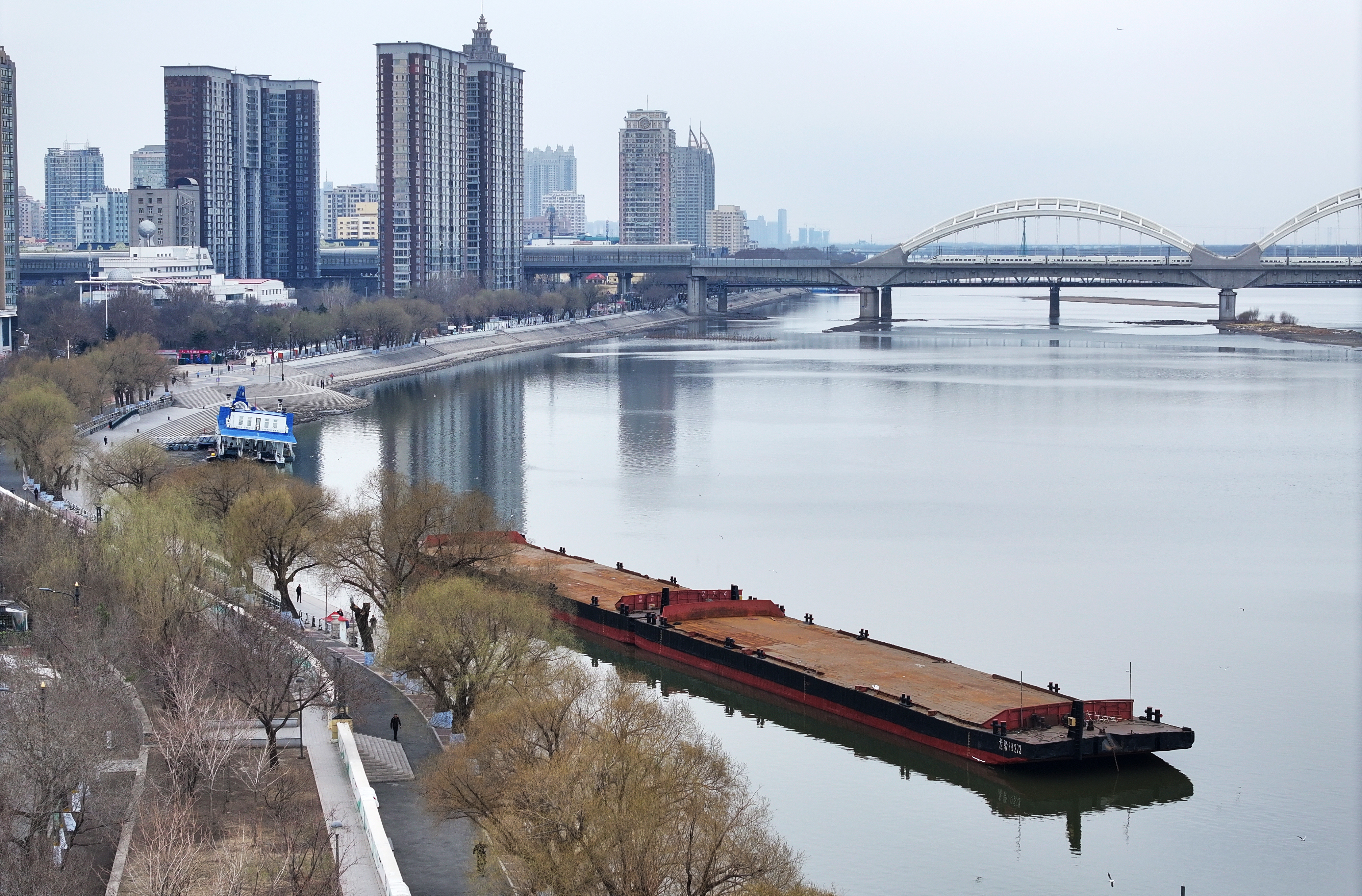4月12日,哈爾濱市春風(fēng)送暖,松花江沿岸綠樹泛綠,桃花含苞,春意蕩漾。在道里、道外江畔,市民打球、練武、跑步,在明媚的春光里健身。