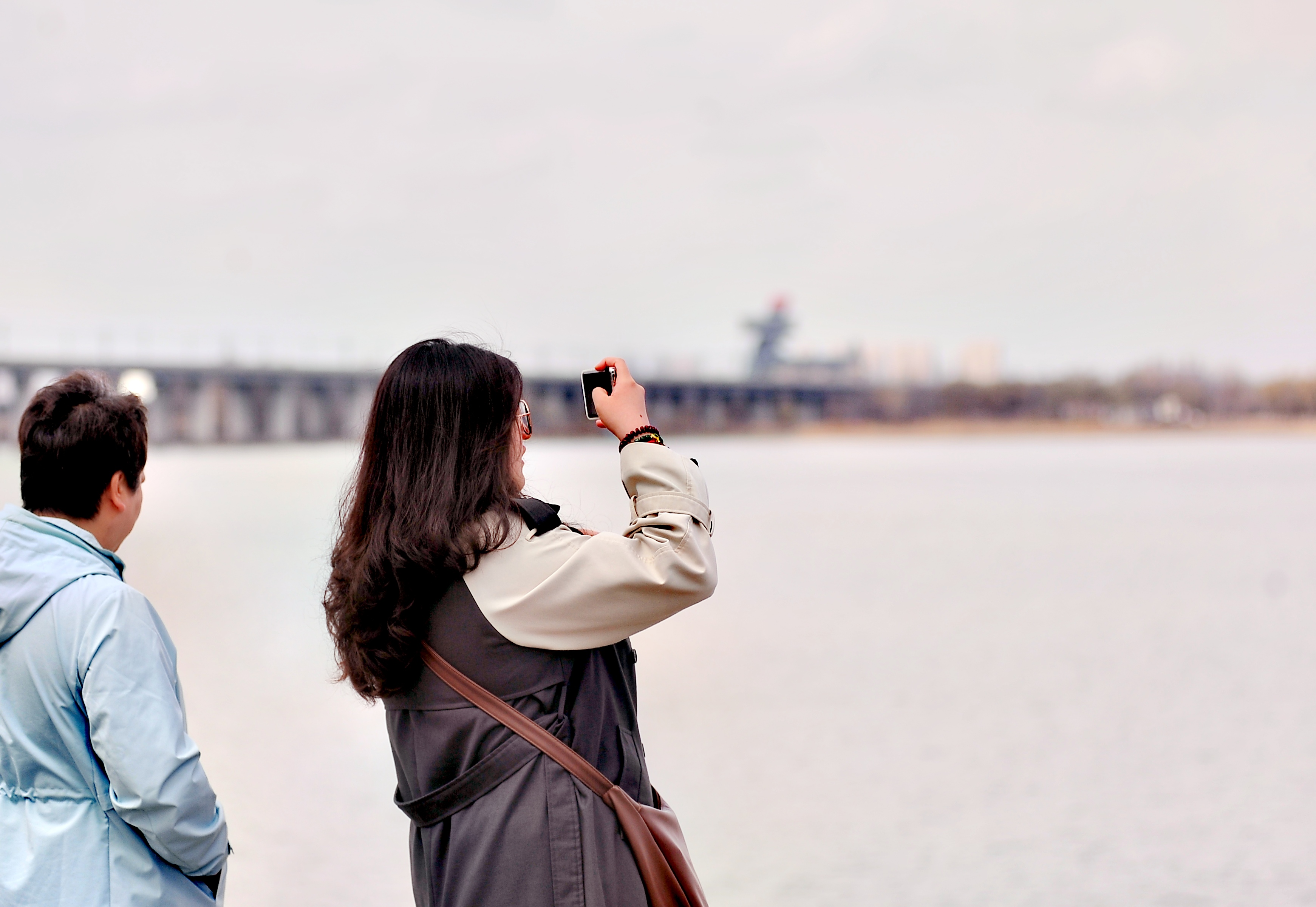 游人在拍攝鷗鳥