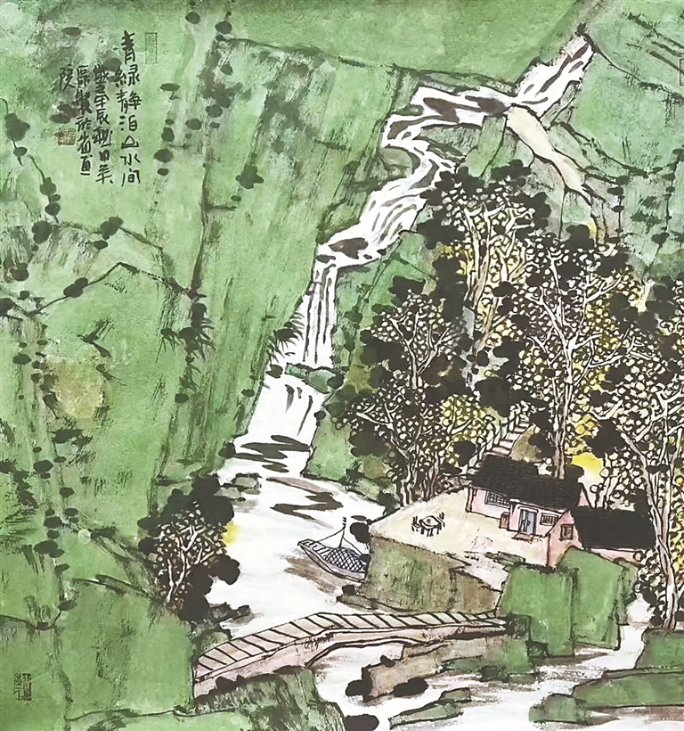 《靜泊山水間》 中國畫 68×68cm 吳磊