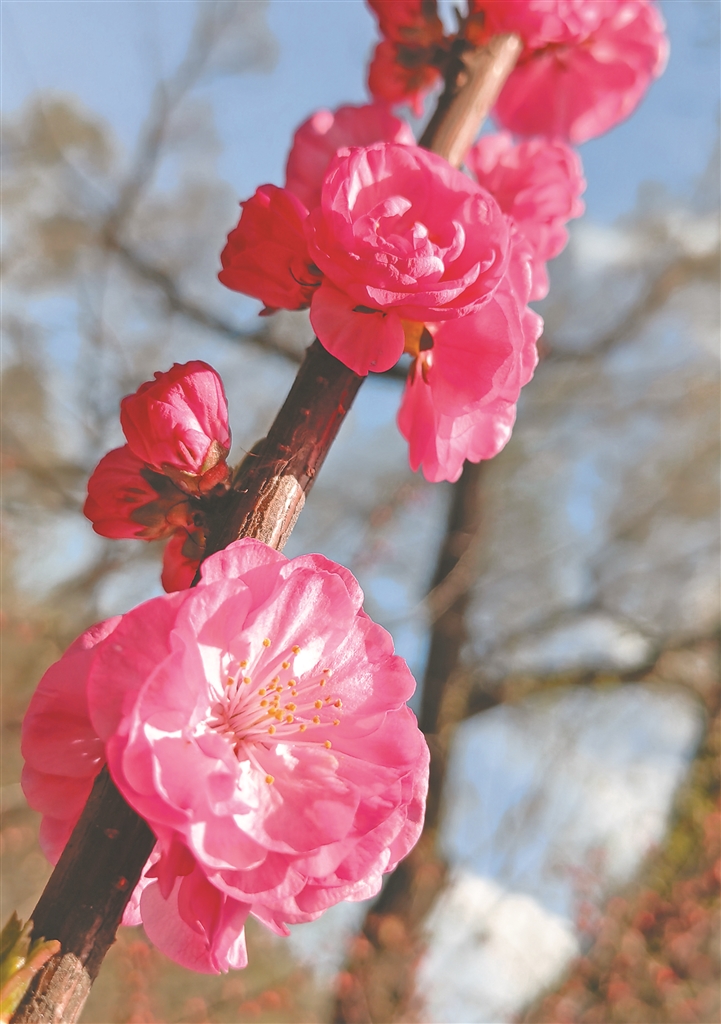 4月24日,哈爾濱市兆麟公園內(nèi),一株單瓣榆葉梅的粉色花朵競相綻放,吸引許多游人上前拍照。不遠(yuǎn)處,多株重瓣榆葉梅枝頭上已綴滿了紅色花朵和含苞待放的花蕾。
