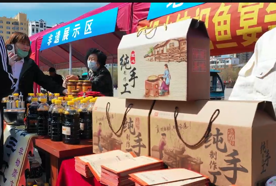 與此同時(shí),現(xiàn)場(chǎng)還設(shè)置了多個(gè)特色展區(qū)?!棒~(yú)文化墻”展示了肇源悠久的漁獵文化歷史;“非遺展示”區(qū)讓游客近距離接觸當(dāng)?shù)胤沁z技藝;“水產(chǎn)品展銷”區(qū)則全方位呈現(xiàn)了肇源水產(chǎn)品從養(yǎng)殖到加工制作的全過(guò)程,讓游客深入了解“肇源制造”的精品。