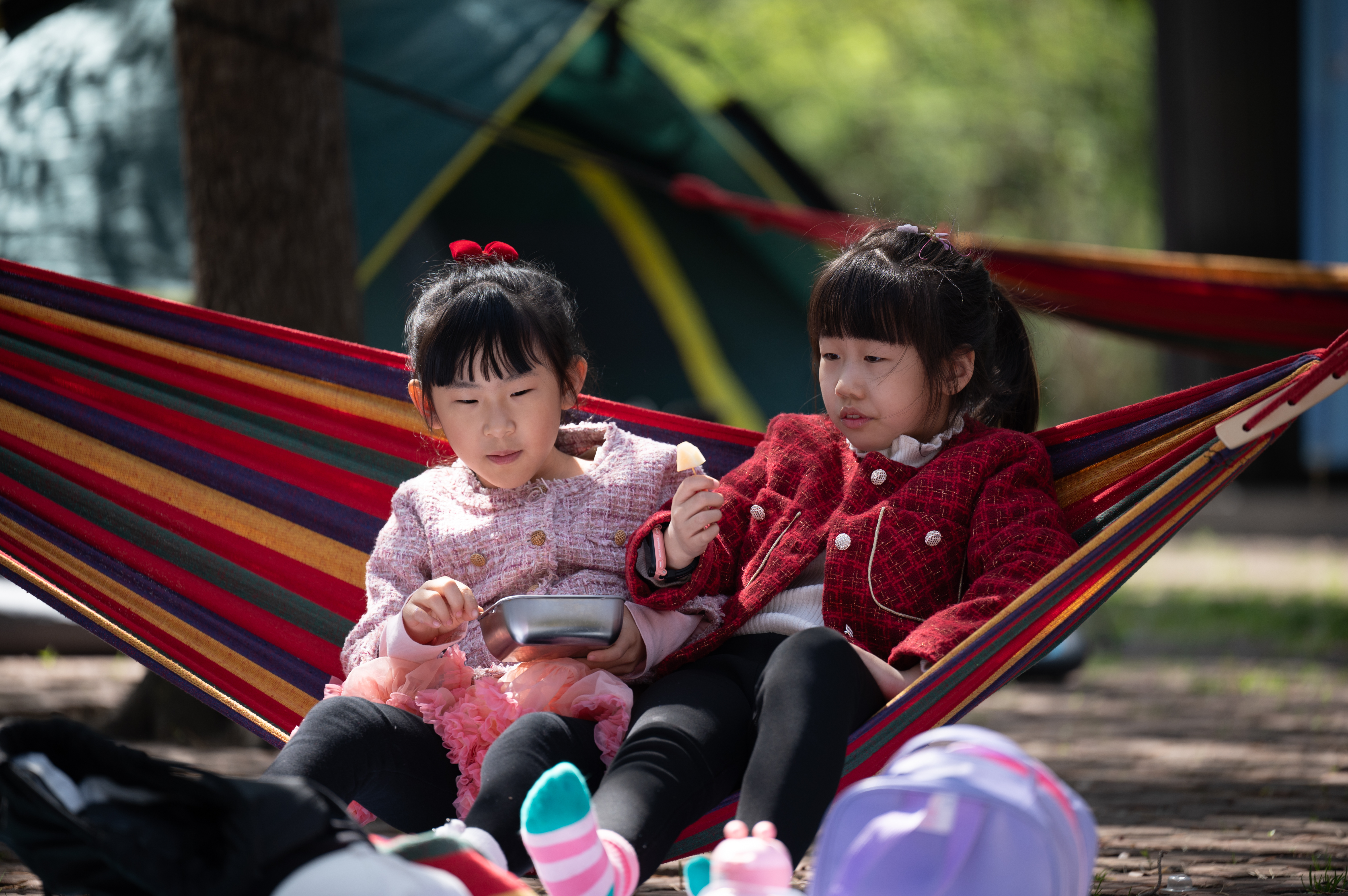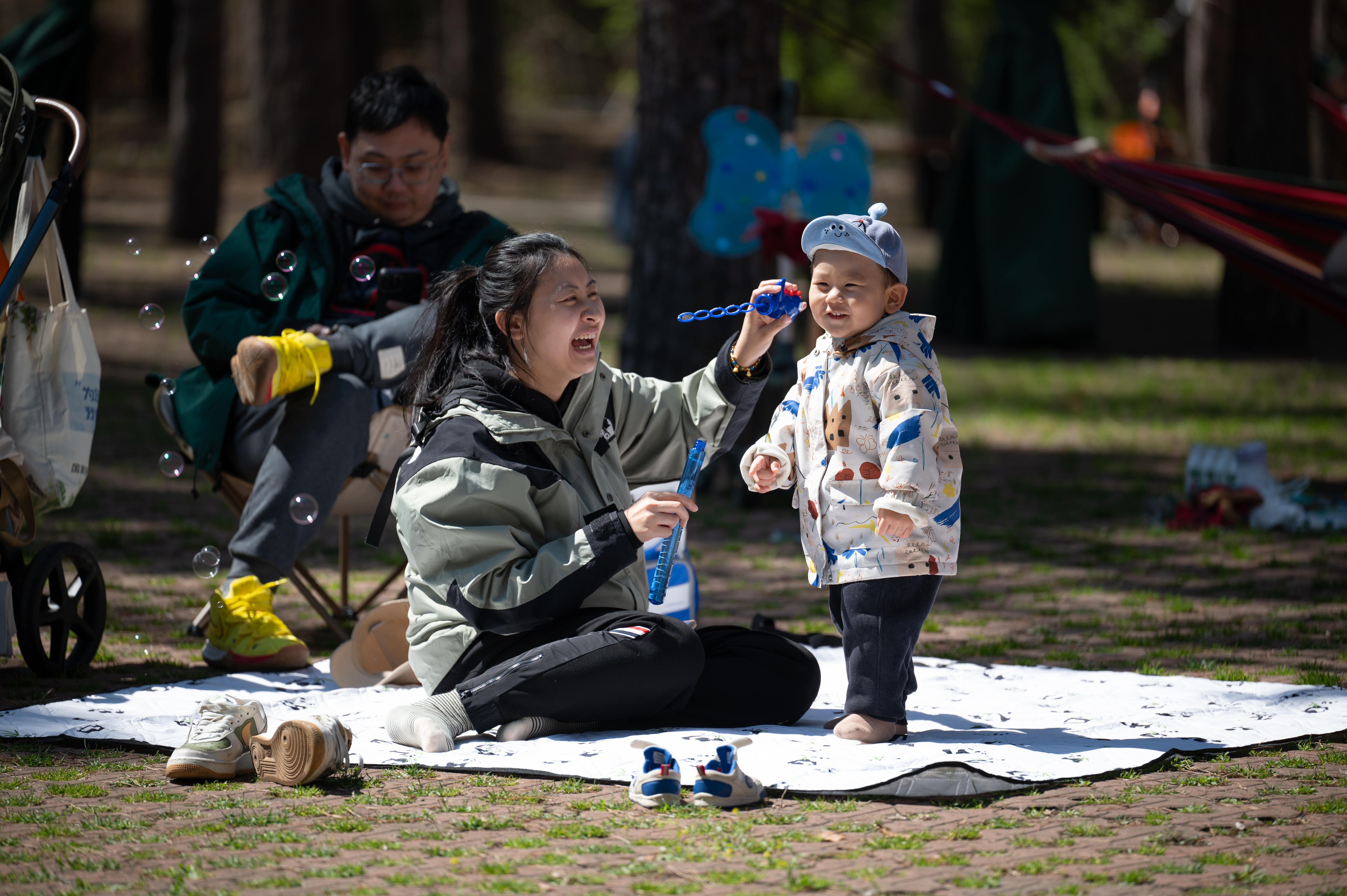 親子家庭在露營(yíng)區(qū)休閑娛樂(lè)