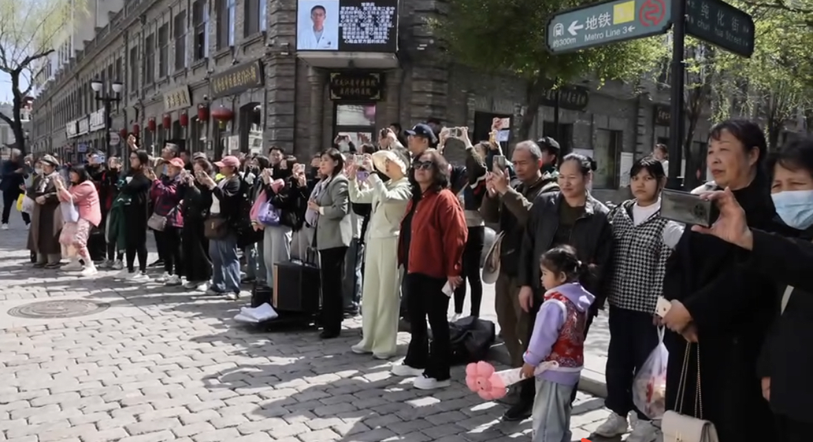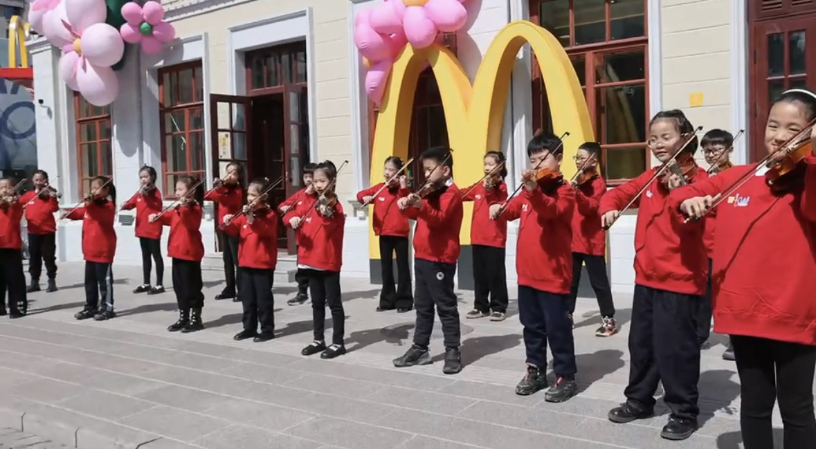 “五一”假期將至,4月26日,哈爾濱勛菲爾德少兒藝術(shù)團(tuán)的22名小演奏員在哈爾濱市道外區(qū)中華巴洛克歷史文化街區(qū)帶來了一場別開生面的快閃演出。