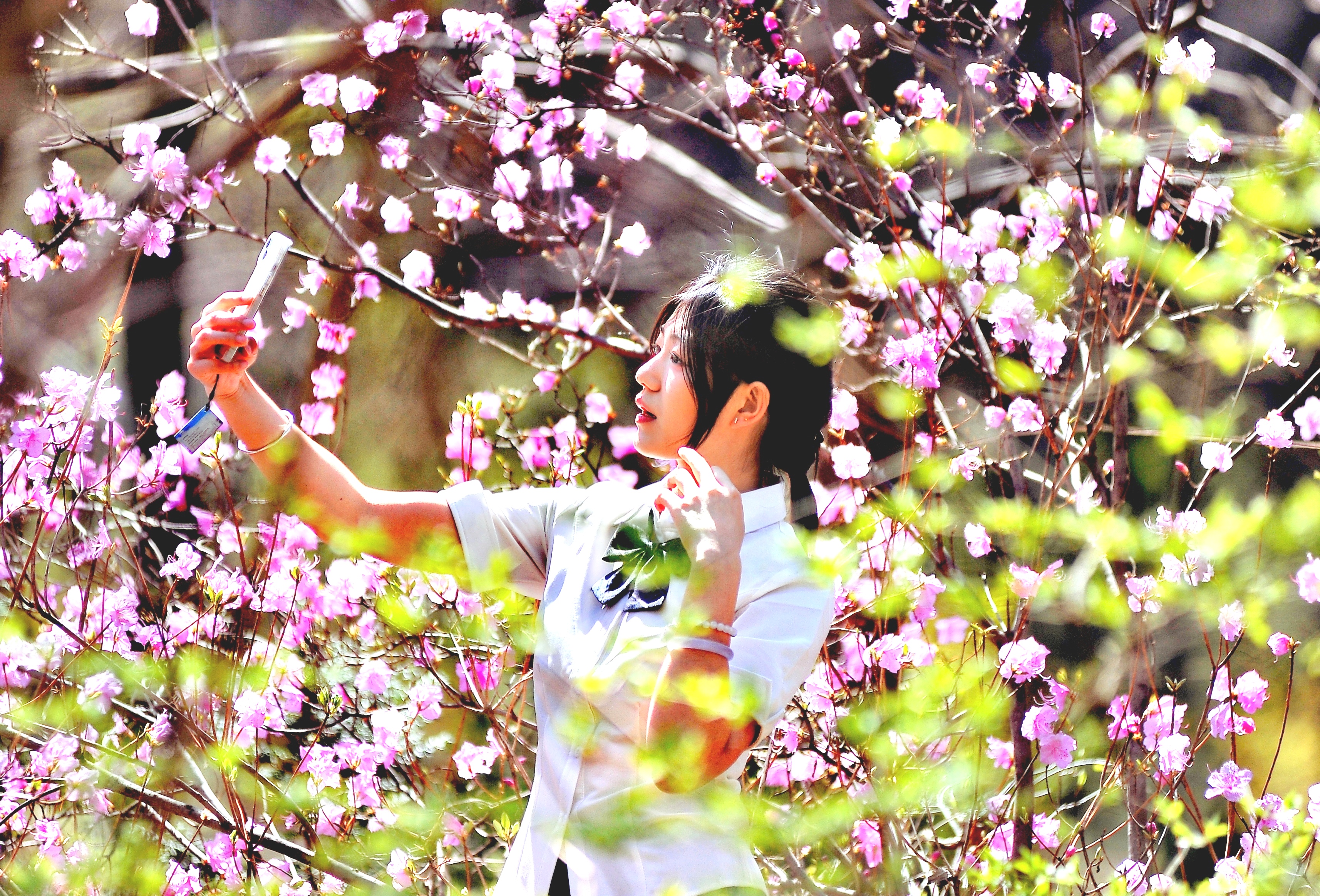 與杜鵑花拍個合照