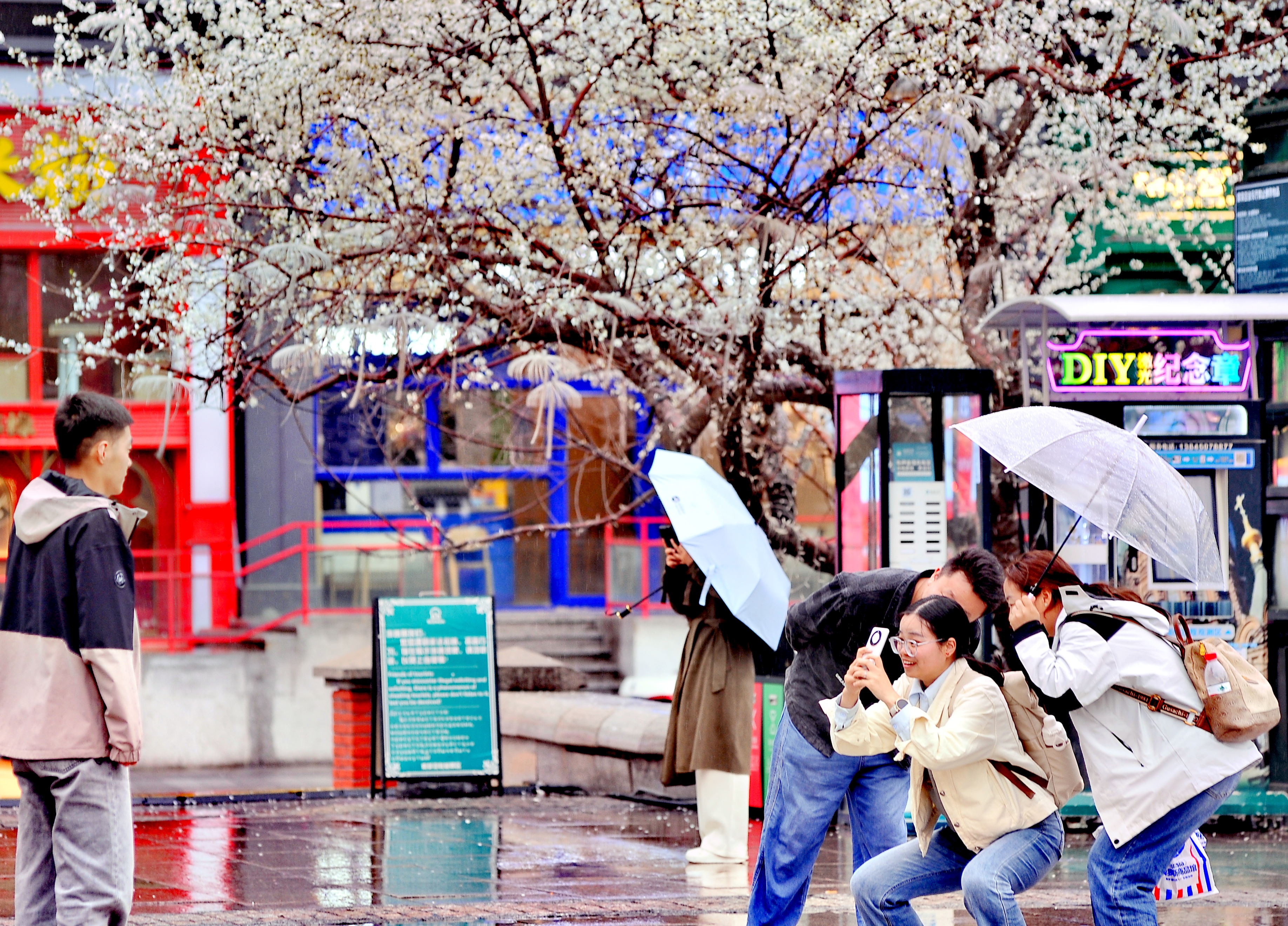 游客雨中賞美景