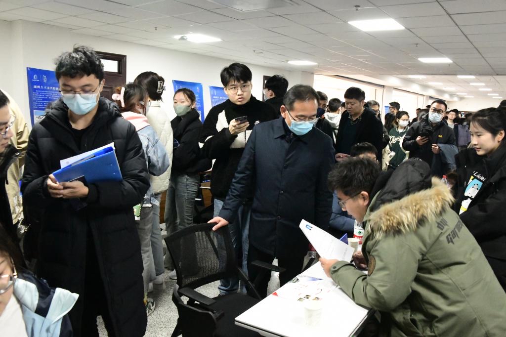 3月8日,湖州市政協(xié)副主席、人社局負(fù)責(zé)人一行來(lái)黑龍江科技大學(xué)考察交流。與此同時(shí),來(lái)自湖州的57家企事業(yè)單位“入校搶人”,共提供了2500余個(gè)崗位,涉及多個(gè)行業(yè)領(lǐng)域。