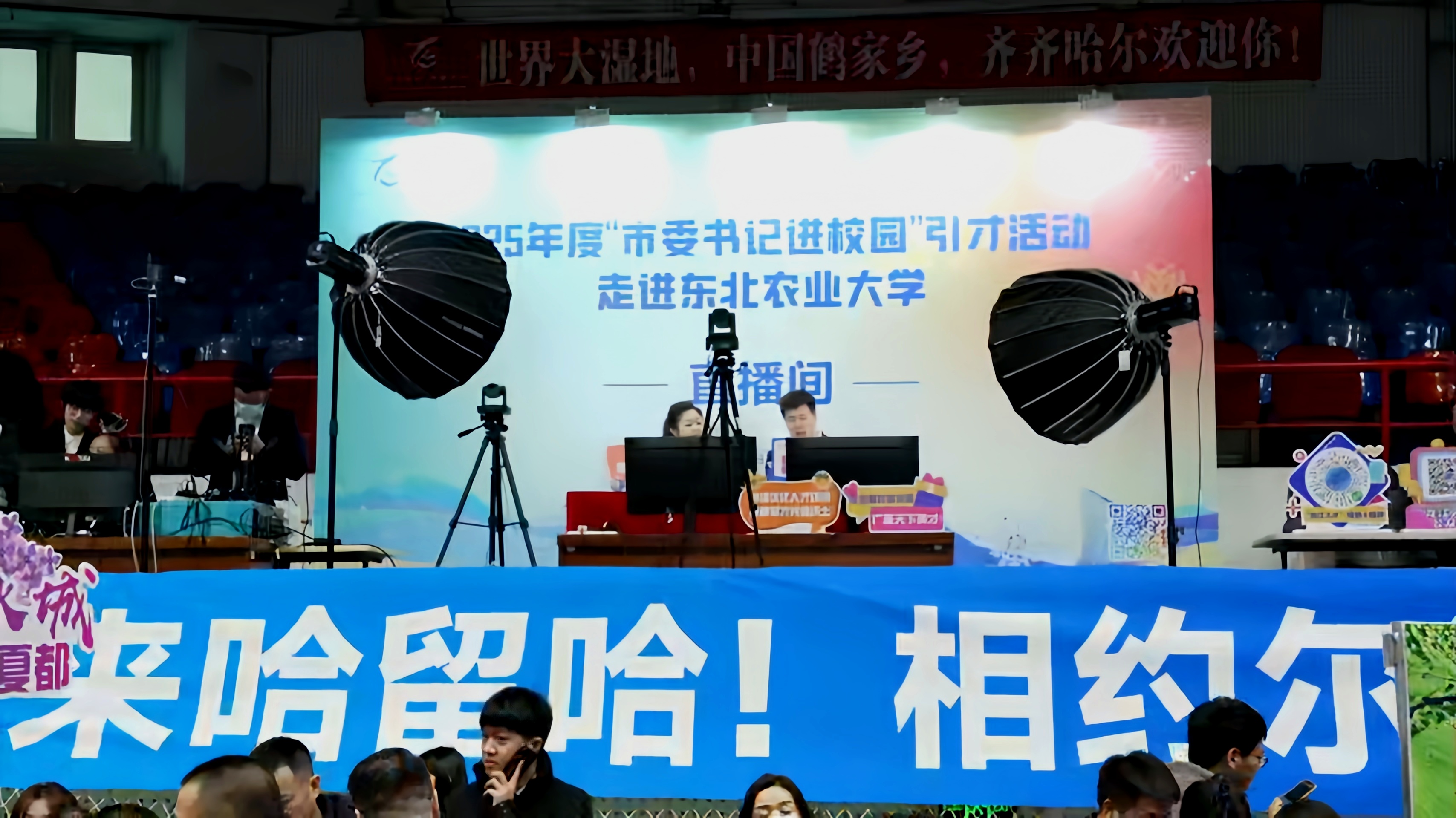 在東北農(nóng)業(yè)大學(xué)招聘會(huì)現(xiàn)場(chǎng),學(xué)校通過(guò)構(gòu)建“短視頻預(yù)熱+云端直播+線下對(duì)接”的立體化就業(yè)服務(wù)模式擴(kuò)大“直播帶崗”覆蓋面,吸引超萬(wàn)名線上求職者參與活動(dòng)。