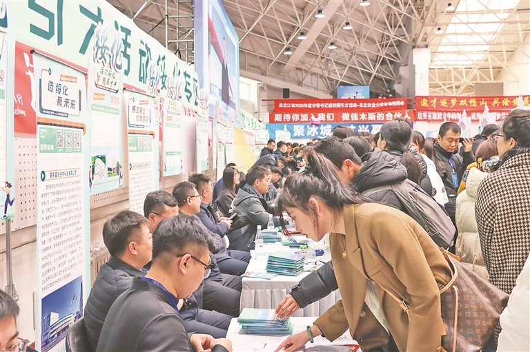 3月29日,黑龍江農墾職業(yè)學院體育館內外人潮涌動,綏化市“百站聯(lián)動·百企進校”專場招聘活動在這里舉行。這場招聘會是綏化市創(chuàng)新開展“市委書記進校園”引才活動、攜轄區(qū)內企業(yè)與職業(yè)院校的一次“組團”精準對接。