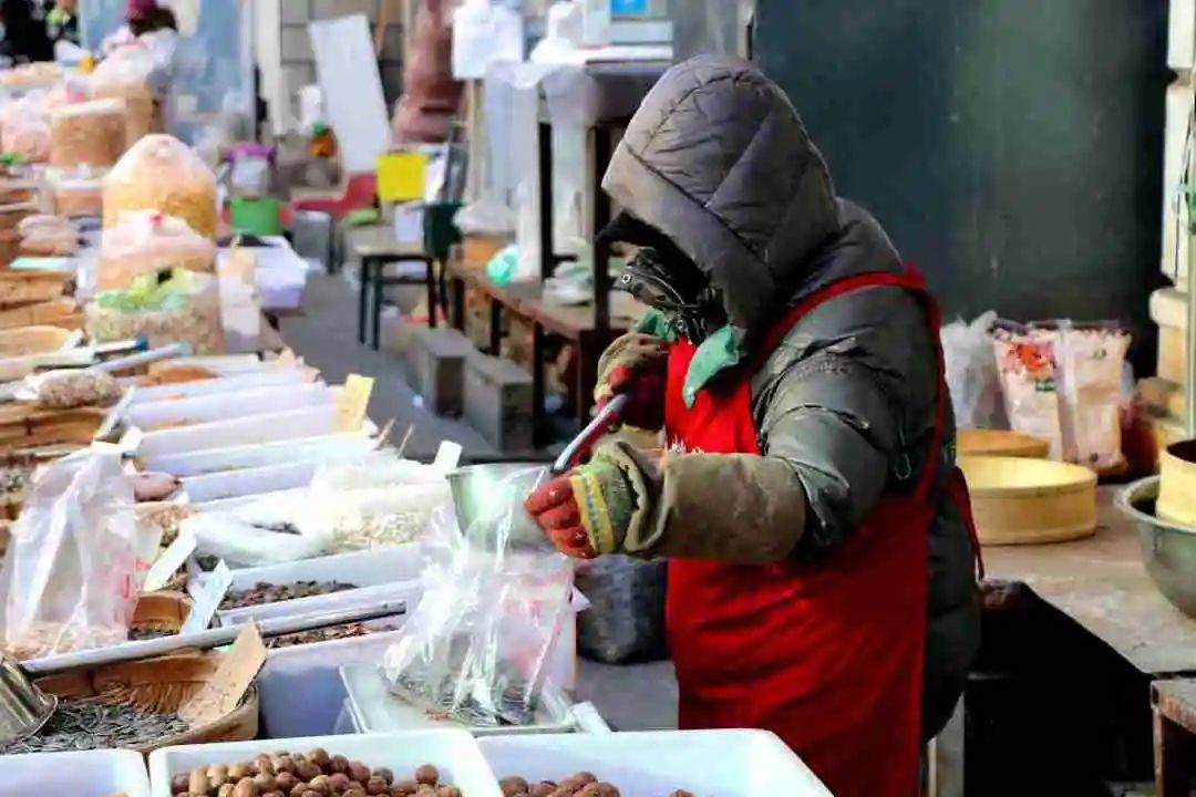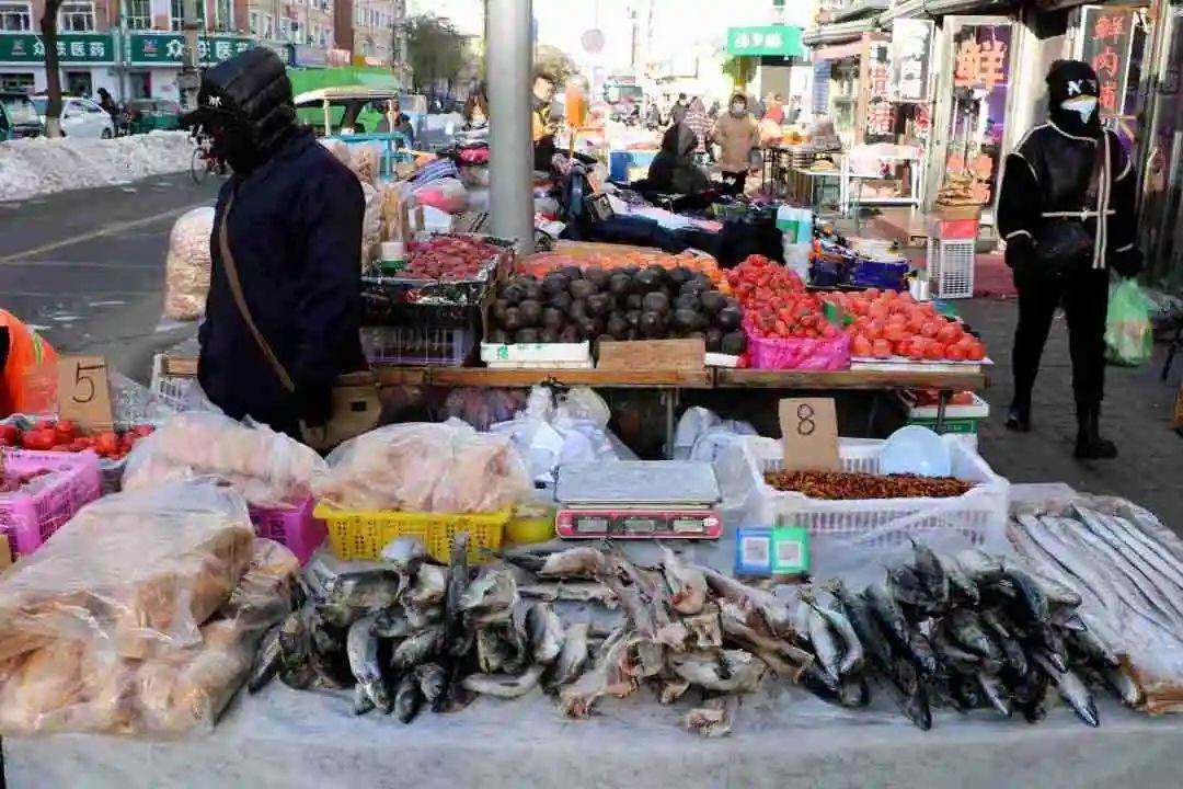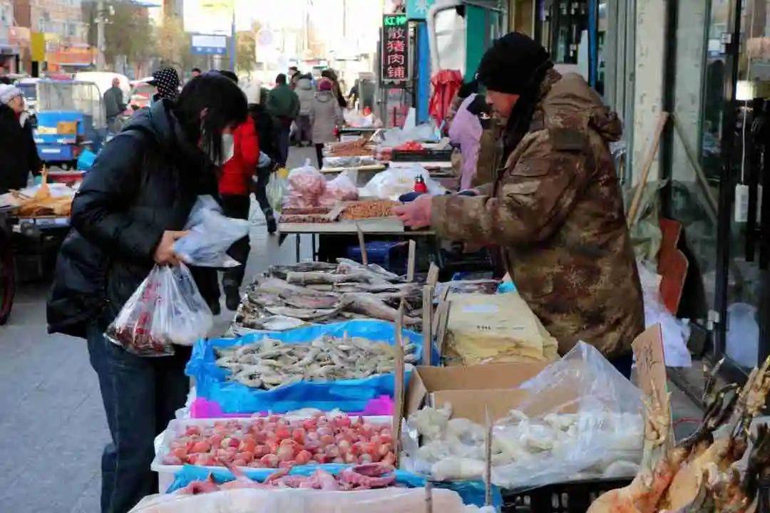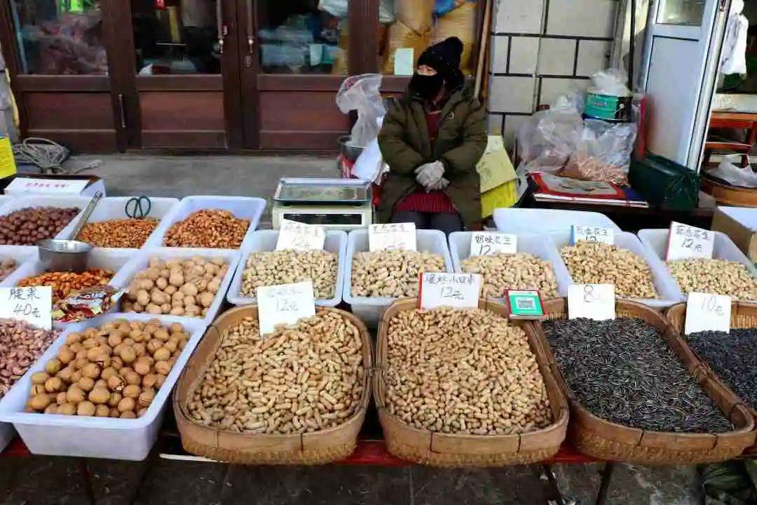 凍梨、凍柿子、凍桃、凍豆包、凍玉米……各種凍貨應(yīng)有盡有,完全能夠滿足市民們的購物需求。除了這些能勾起大家童年回憶的凍貨外,還有凍魚、凍海鮮、凍豆腐、炒貨干果等。