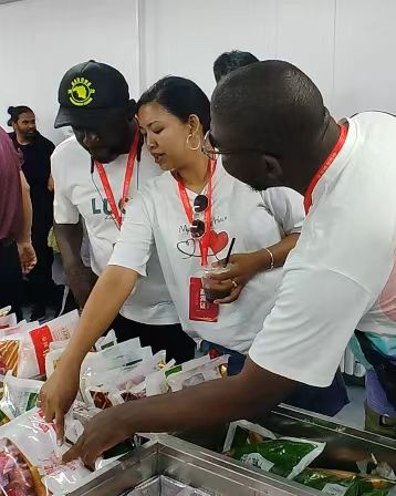 留學(xué)生們都是第一次品味齊齊哈爾烤肉。“新鮮的生菜包著烤熟的牛肉,搭配著特有的小料,一口下肚,絕對過癮?!瘪雎犞碳覍救馐址ê统苑ǖ慕榻B,他們不一會(huì)就對齊齊哈爾烤肉吃法駕輕就熟。交流中大家說起了齊齊哈爾烤肉和自己家鄉(xiāng)烤肉異同。來自巴拿馬的陳國榮表示,齊齊哈爾烤肉很好吃,這里的烤肉肉很薄,巴拿馬的烤肉肉則較厚,炙烤的時(shí)間要長些。來自尼日利亞的迪達(dá)姆說:“齊齊哈爾烤肉和我的國家的烤肉類似,兩者都很好吃,我非常喜歡齊齊哈爾烤肉!”看來,齊齊哈爾烤肉的味道,已經(jīng)征服了這些國際友人的味蕾。