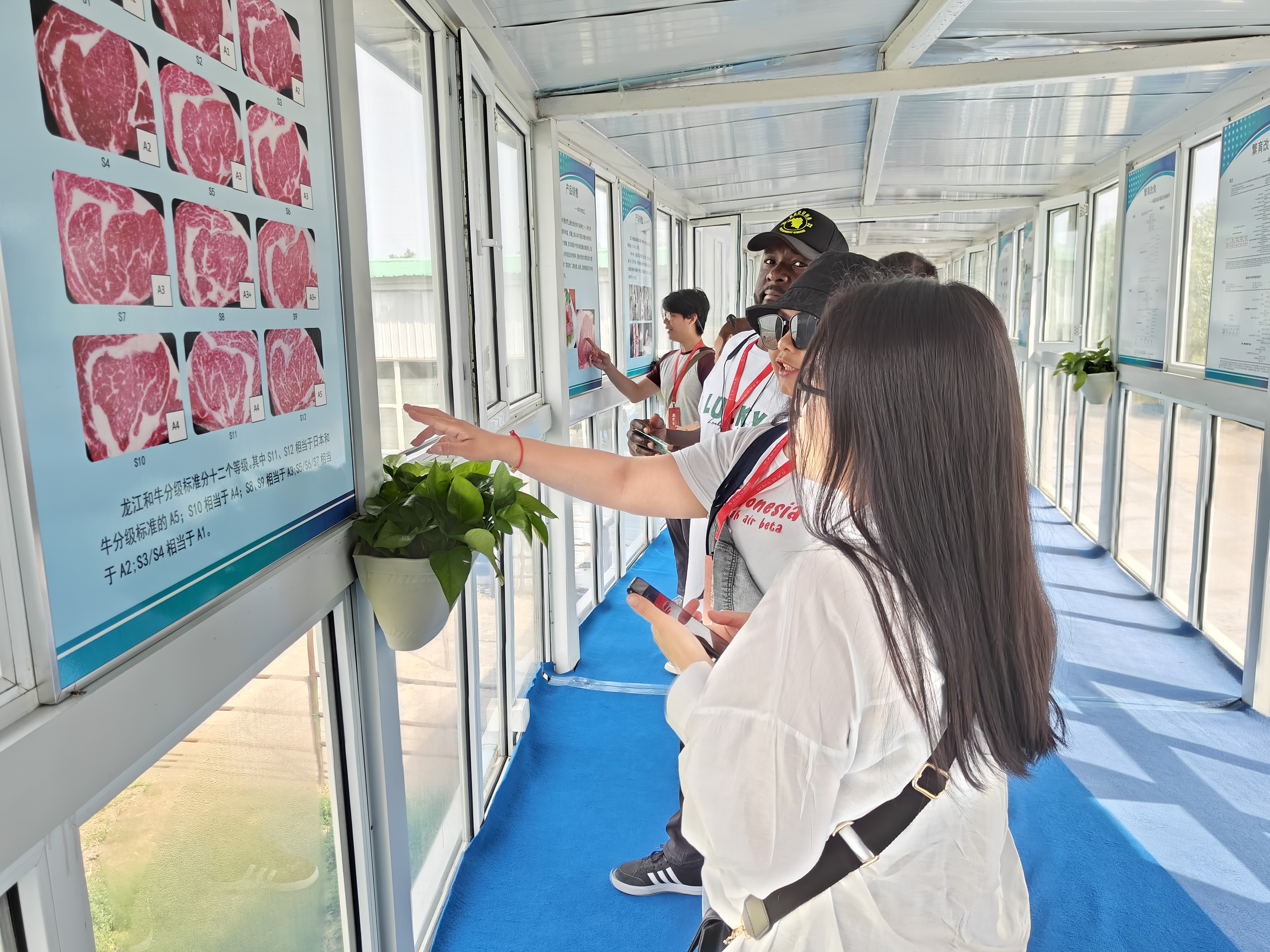 近距離觀察“龍江和?!别B(yǎng)殖,聆聽飼養(yǎng)員現(xiàn)場講解,實(shí)地參觀牛舍;走入齊齊哈爾烤肉生產(chǎn)企業(yè)外包裝車間,參觀現(xiàn)代化的烤肉封裝、打包等生產(chǎn)流程;做客中國達(dá)斡爾族第一村—哈拉新村烤肉露營營地,感受“民族風(fēng)”的自然和諧之美……豐富的體驗(yàn)不僅讓留學(xué)生們對齊齊哈爾烤肉產(chǎn)業(yè)有了深入了解,也徹底讓他們愛上了這里的烤肉,紛紛發(fā)出了“齊齊哈爾烤肉,好吃!”的由衷贊嘆。