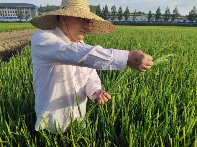 中國水稻研究所北方水稻研究中心主任曹立勇在查看水稻長勢