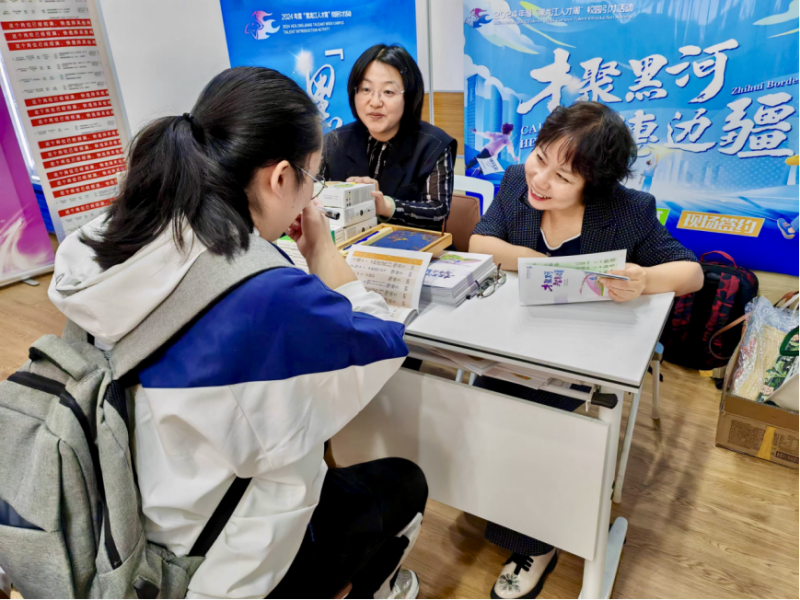 2024年“黑龍江人才周”校園引才活動黑河市引才專員為考生解答政策