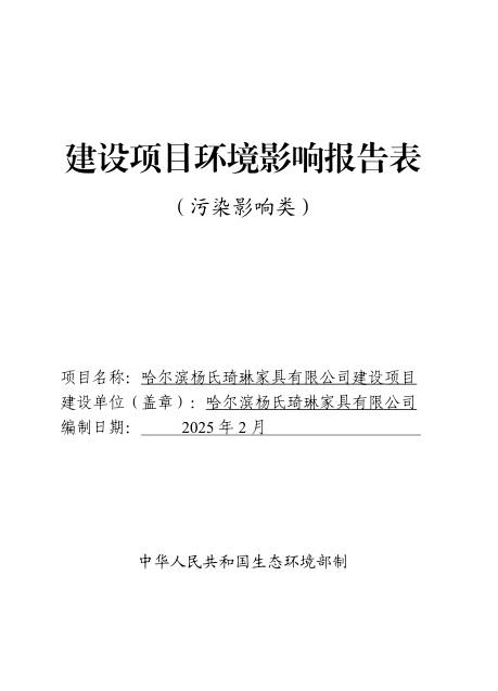 哈爾濱楊氏琦琳家具有限公司建設(shè)項(xiàng)目環(huán)境影響報(bào)告表
