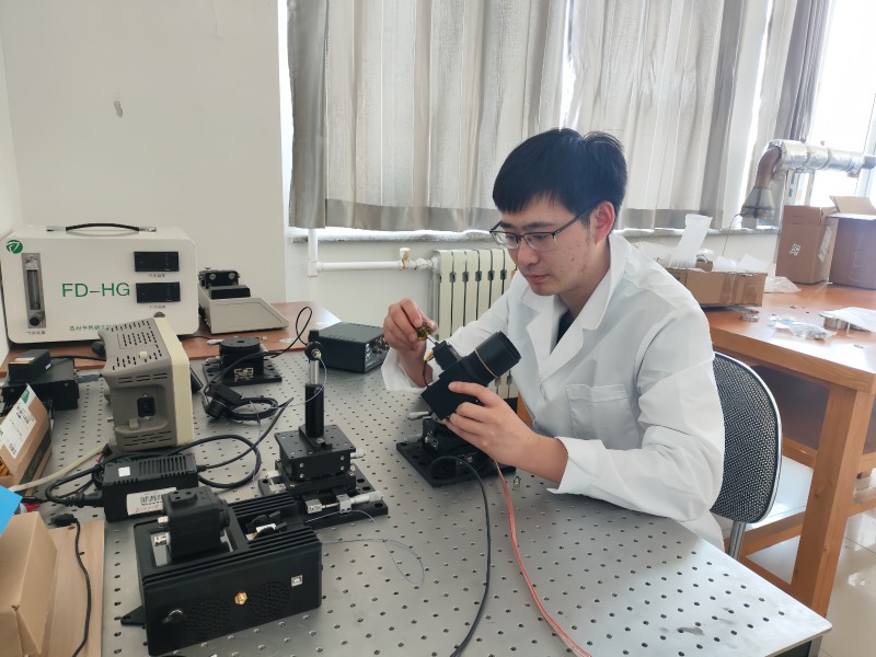 王迪調(diào)試最新研發(fā)的高靈敏逸散性碳排放激光遙測樣機(jī)
