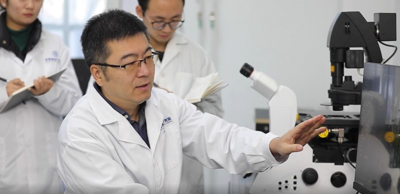 孫先達(dá)指導(dǎo)學(xué)生做激光掃描共聚焦頁巖油組分可視化實(shí)驗(yàn)